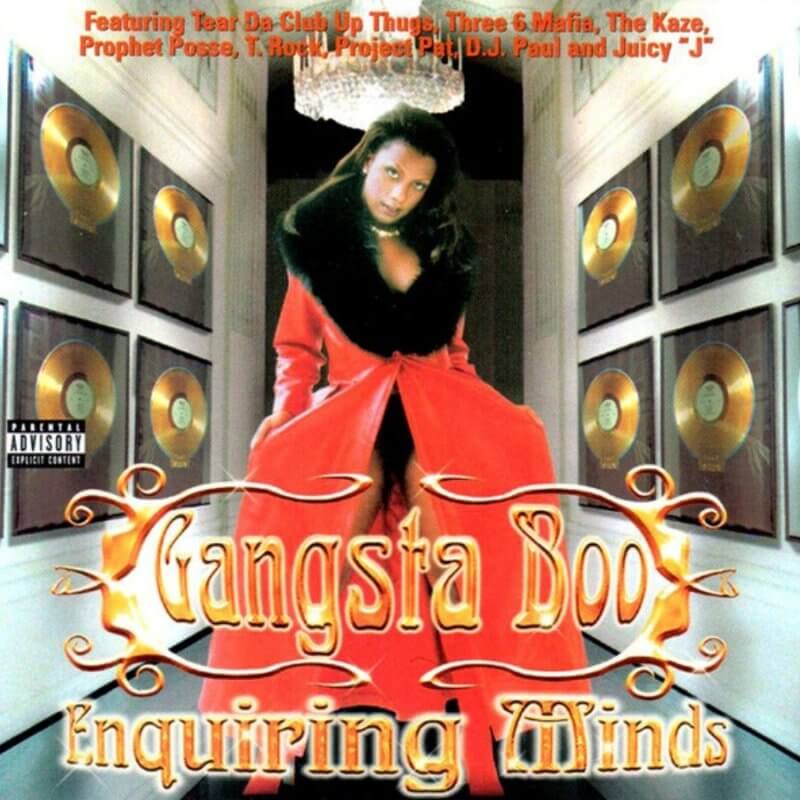 Quelques années après avoir intégré le groupe Three 6 Mafia, sans surprise, Gangsta Boo tente une escapade en solo avec un premier album intitulé Enquiring Minds. Une sortie supervisée et produite par le duo DJ Paul et Juicy J qui permet à la rappeuse de Memphis de se faire un nom dans le rap game. Bien aidé par le captivant single « Where Dem Dollas At », Boo se montre à son avantage sur un disque bien évidemment très Dirty South dans ses sonorités sur fond de Crunk. La rappeuse passe de morceaux sombres comme « Wanna Go To War » à d’autres plus posés à l’image du touchant « I’ll Be The Other Woman » par exemple. Un projet qui ne manque pas de caractère et incarné par des sorties marquantes telles que « Nasty Trick », « Money And The Powder » et « Life In The Metro ». Avec le recul, la deuxième partie d’album de ce LP est peut être plus convaincante et surtout détachée des nombreuses apparitions au micro de Paul et Juicy. Son album suivant Both Worlds *69 marquera la fin de son aventure au sein du collectif Three 6 Mafia.