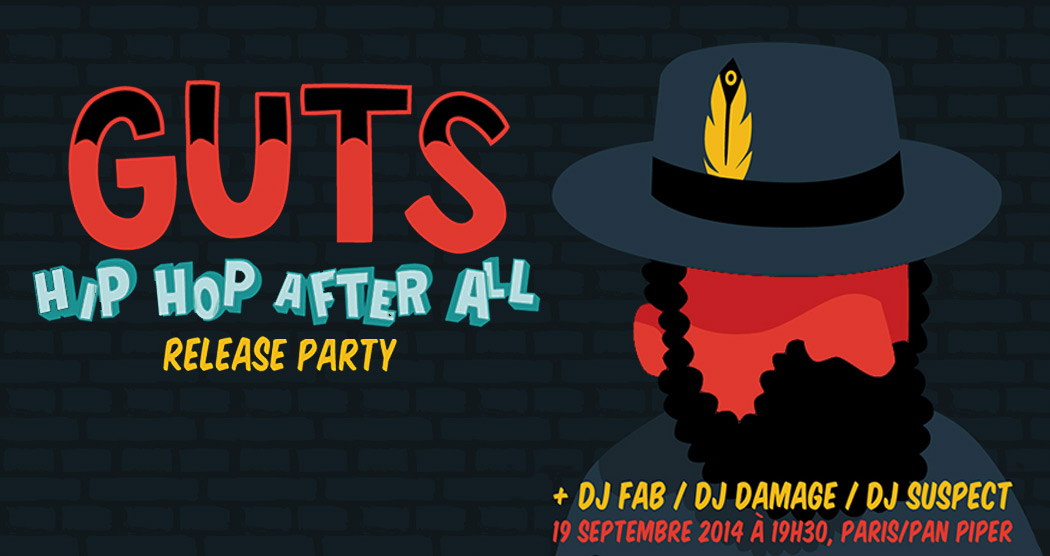 GUTS organise le 19 Septembre une release party pour son dernier album Hip Hop After All. Lui et ses acolytes assureront le show de 19h30 à 23h00 au Pan Piper.