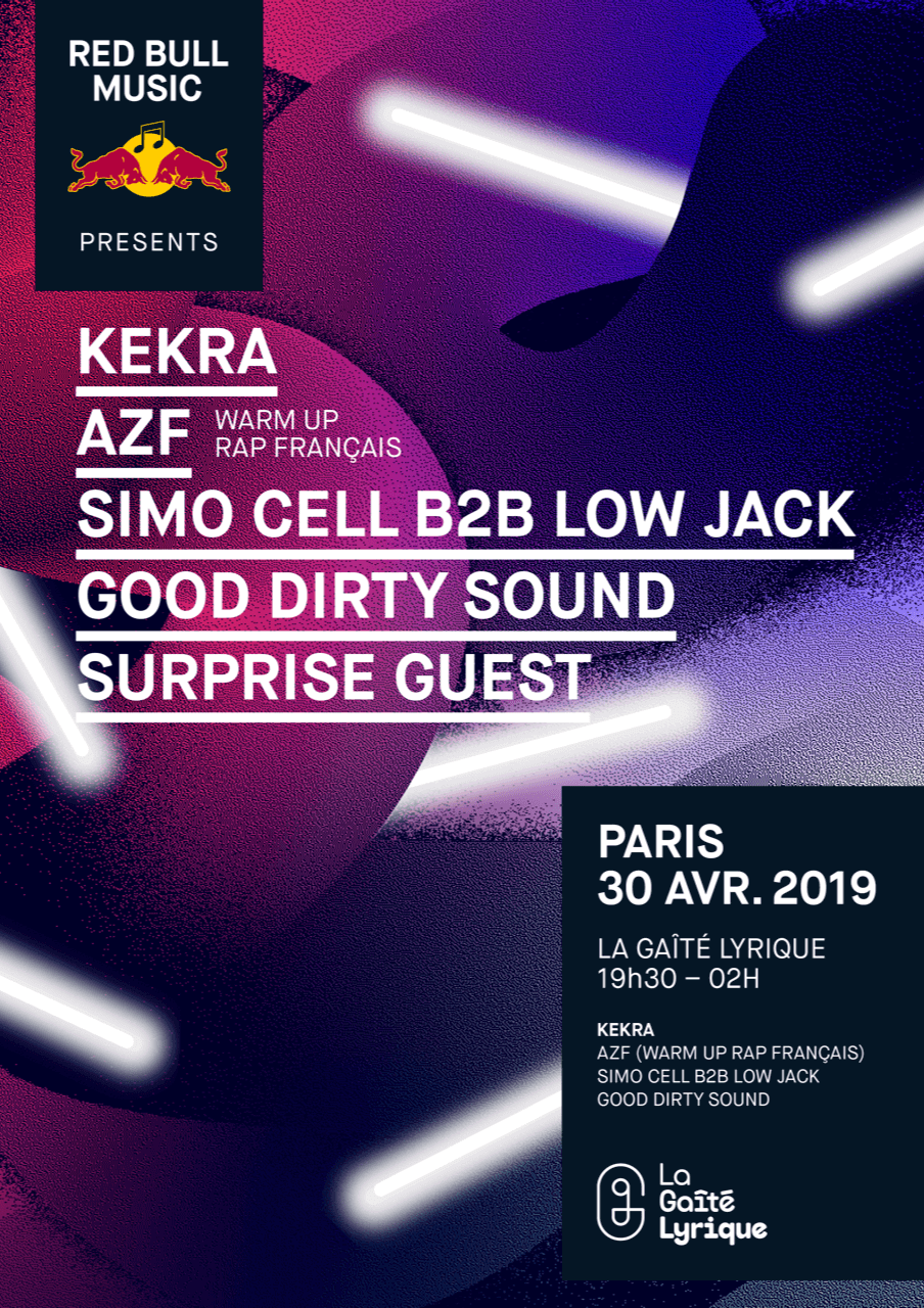 A l’occasion de la ré-ouverture des studios Red Bull Music à la Gaité Lyrique, la marque iconique convie pour une soirée le rappeur Kekra mais aussi AZF, Simo Cell et Low Jack en Dj sets.