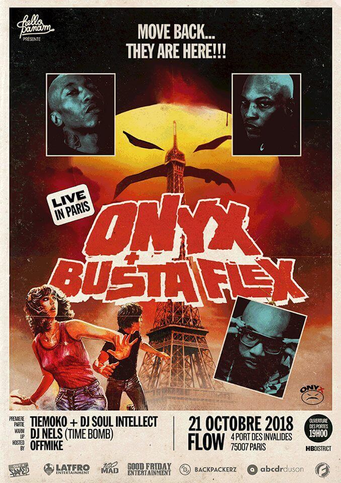 Véritable pilier de la scène hip-hop parisienne, le collectif HELLO PANAM présente un plateau franco-américain qui réunira sur la scène du Flow (Paris 7e) deux légendes du rap des années 90 : le groupe américain Onyx tout d’abord ; ainsi que le rappeur Busta Flex.