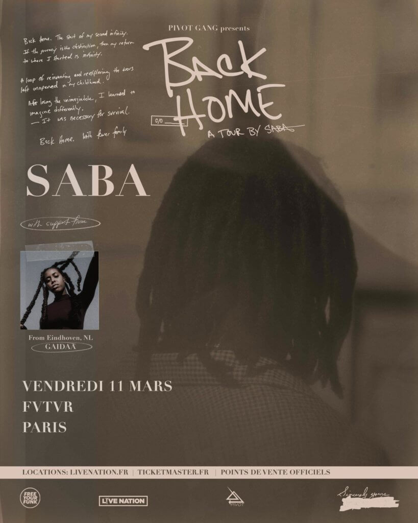 Artiste indépendant noir à succès, Saba a ancré sa carrière dans l’authenticité et la musicalité qui ont fait de lui l’une des voix les plus importantes et uniques de sa génération qui ont fait de lui l’une des voix les plus importantes et uniques de sa génération. Un acteur majeur de la scène de Chicago dont la carrière enviable l’a vu collaborer avec et produire pour des artistes comme Chance The Rapper, Noname, Mick Jenkins et bien d’autres. Après sa première incursion dans la musique à l’âge de 8 ans, au début de son adolescence, il a construit un studio d’enregistrement. Adolescent, il a construit un studio d’enregistrement dans le sous-sol de sa grand-mère dans le quartier ouest de Chicago où lui et un groupe d’amis du quartier ont formé Pivot Gang. Ils ont commencé à prendre le train pour traverser la la ville pour rejoindre des organisations de jeunes créatives et se produire dans des open mics. Issu d’une famille profondément musicale, Saba a été influencé dès son plus jeune âge par son père, un artiste R&B de Chicago nommé Chandlar, qui l’emmenait avec lui en studio pour enregistrer des chansons. Il l’emmenait avec lui en studio pour enregistrer des sons de soul, de R&B et de jazz. Autant d’expériences qui ont développé sa palette sonore, aiguisé ses compétences en matière d’écriture et d’interprétation et l’a amené à s’initier en autodidacte à divers instruments de musique – un talent et une musicalité innés qui lui ont valu le soutien de Pitchfork (8.7 Best New Music), NPR (album hip-hop de l’année pour CARE FOR ME), Rolling Stone, Billboard, The Fader, FACT, Complex et bien d’autres.