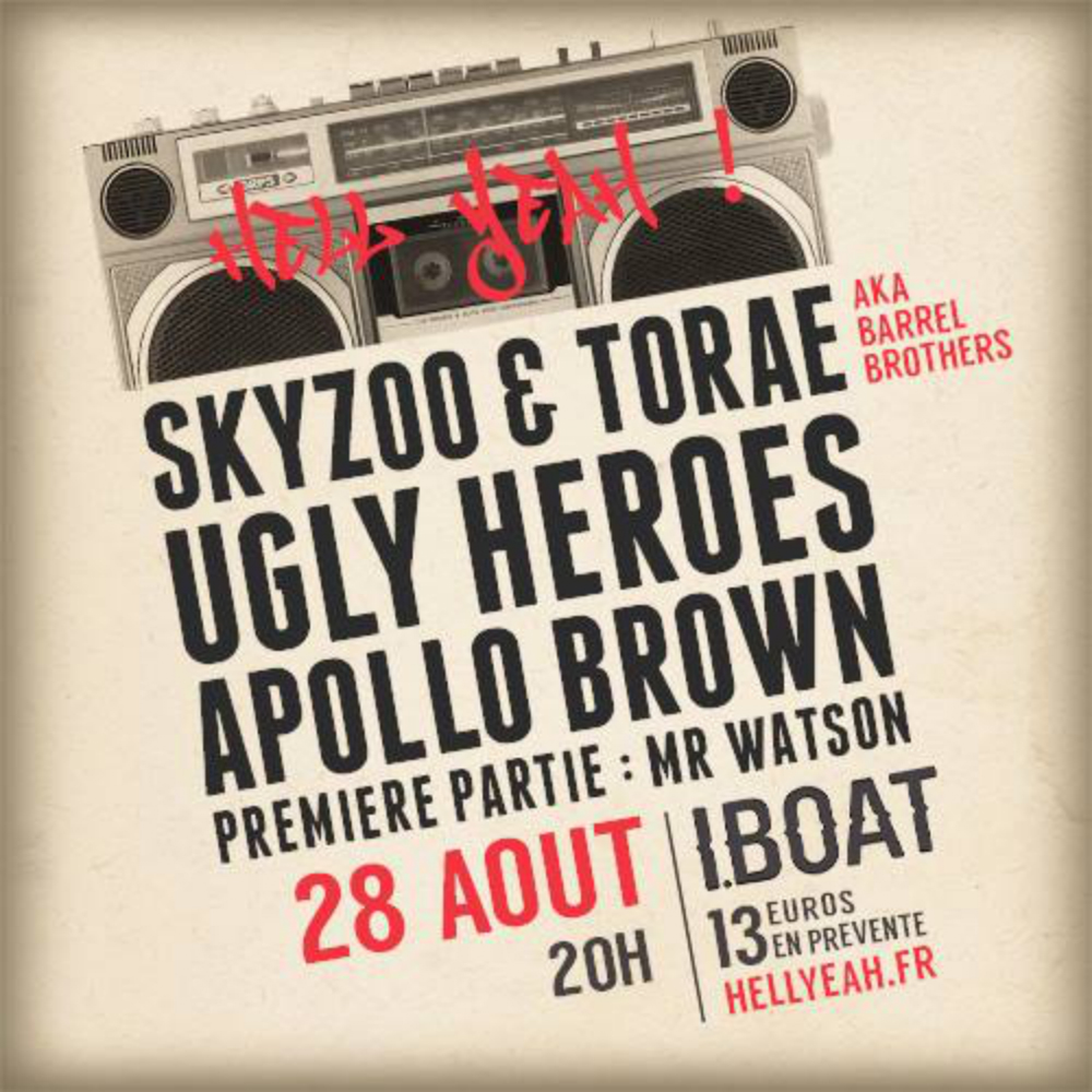 Chanceux Bordelais ! Pour leur tournée européenne commune, les Ugly Heroes (Apollo Brown, Verbal Kent, Red Pill) et les Barrel Brothers (Skyzoo & Torae) ont choisi comme unique date française la ville de Bordeaux, et plus précisément l’I.Boat, le 28 août prochain.