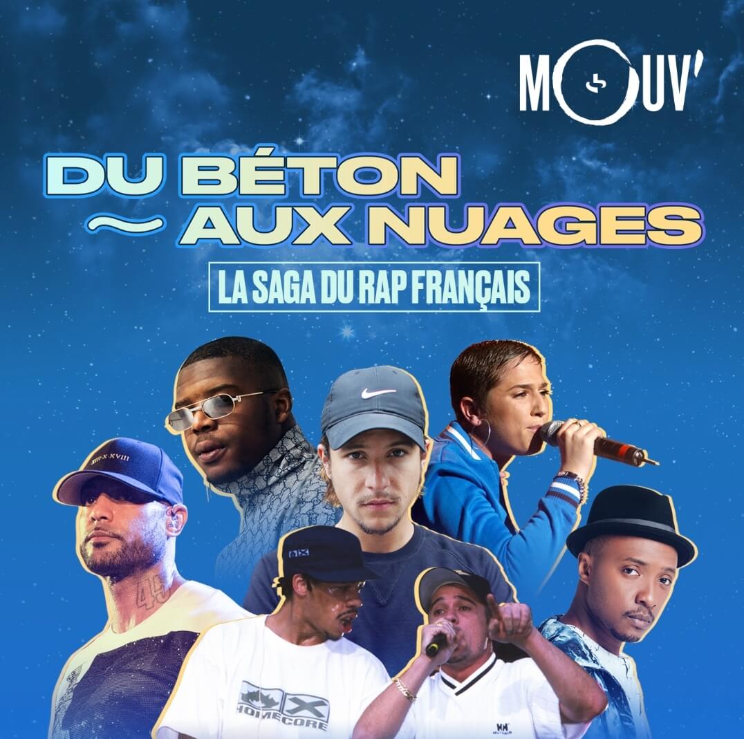 Conçu et écrit par Raphaël Da Cruz et narré par Pascal Cefran, Du Béton aux nuages – la saga du rap français est le nouveau podcast de Mouv’. Une émission qui plonge l’auditeur en 11 épisodes dans l’histoire riche et mouvementée du rap français.